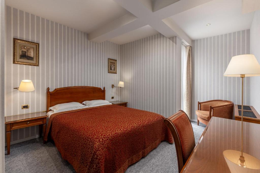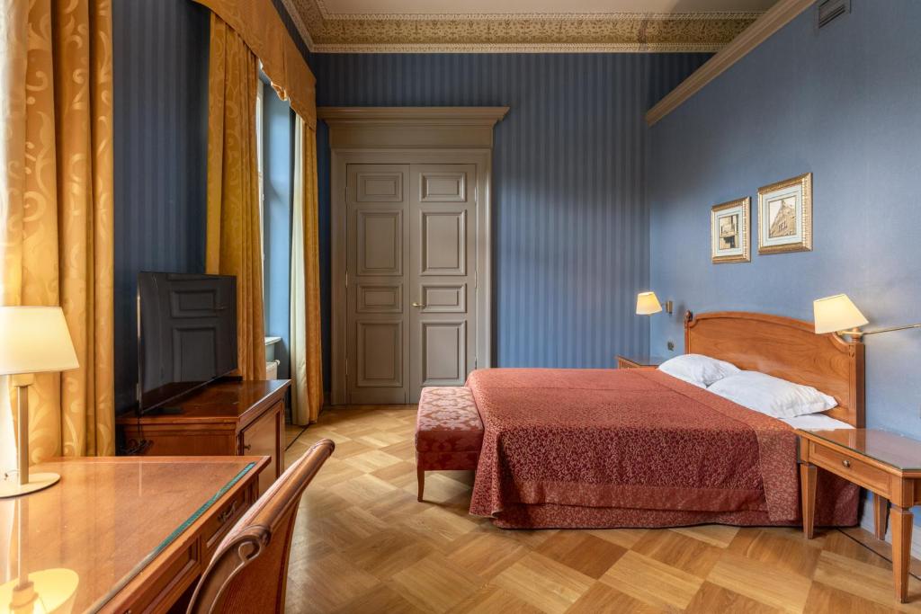 "Pand met de bourgeois-luxe van de 19e eeuw. Heel mooie ontbijtruimte, bar en salons. Via het park op loopafstand van de oude stad, treinstation achter de hoek."