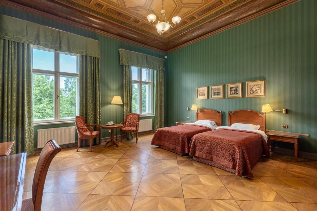 "Schitterende, zeer ruime kamer in karakteristiek pand. Onze kamer had een hoog plafond, stijlvolle inrichting, gerieflijke bedden en een heerlijke badkamer. Ook indrukwekkend mooie zalen in de rest van het pand, je zou er zo een kostuumdrama kunnen filmen. Als bonus hadden we vanuit de kamer een prachtig uitzicht over het vers besneeuwde park. Een sprookje!"